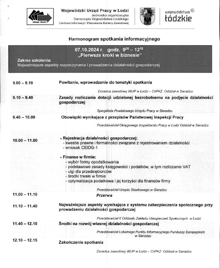 Celem spotkania będzie zapoznanie osób zamierzających rozpocząć działalność gospodarczą z podstawowymi zasadami rejestrowania i prowadzenia działalności gospodarczej wynikającymi z obowiązujących w tym zakresie przepisów.